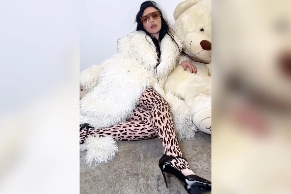 На днях Серябкина удивила свою аудиторию подписчиков в социальных сетях гламурными зимними фото. Звезда снялась в пушистой белой шубке, леопардовых колготках и черых туфлях на высоких каблуках. Рядом с ней на диванчике расположился огромный плюшевый мишка.