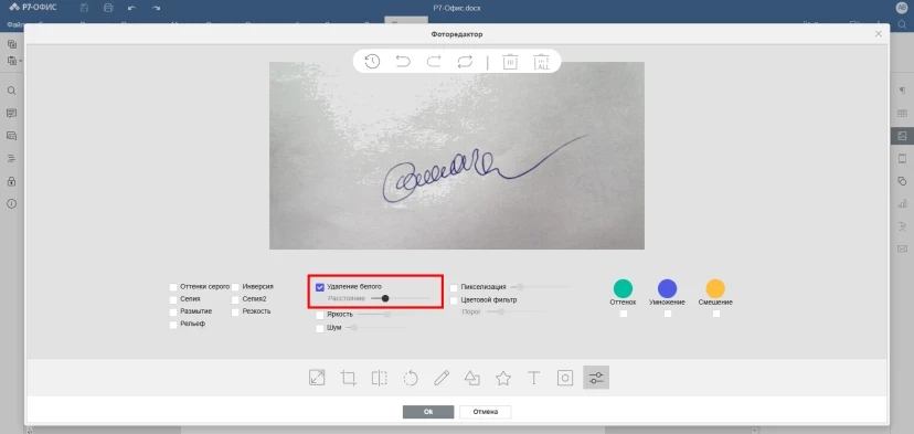 - Двигайте ползунок, пока фон не станет прозрачным, и останется только ваша подпись.