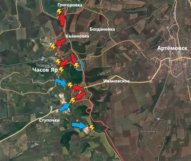 В самом Часов Яре обстановка изменений не претерпела. Бои идут у Часовоярского огнеупорного комбината и на северо-западе микрорайоне Новый, который на текущий момент находится под ВСУ.