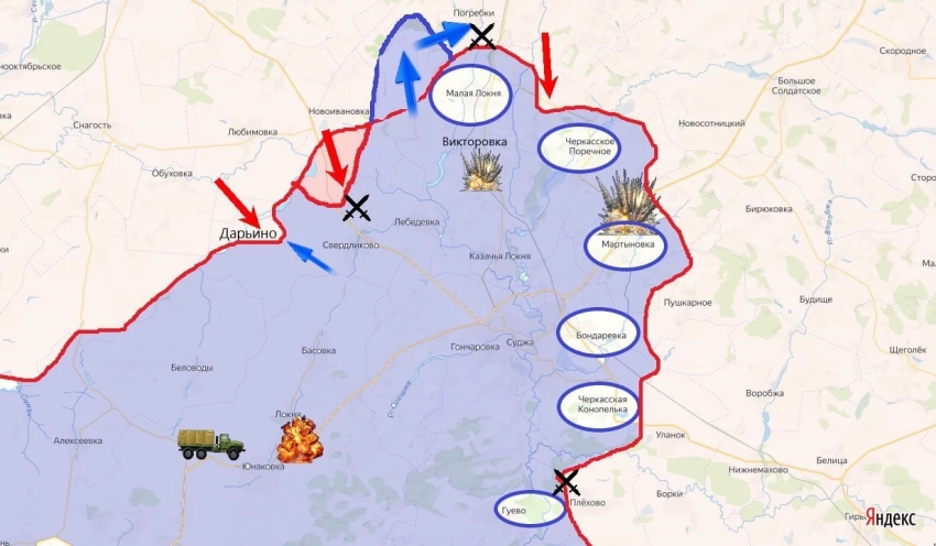 Также продолжается выдавливание противника из соседнего леса в сторону реки Псёл. Цель наших - отрезать ВСУ от снабжения, с которым, как сообщают с мест, у ВСУ в этом районе уже возникают сложности.