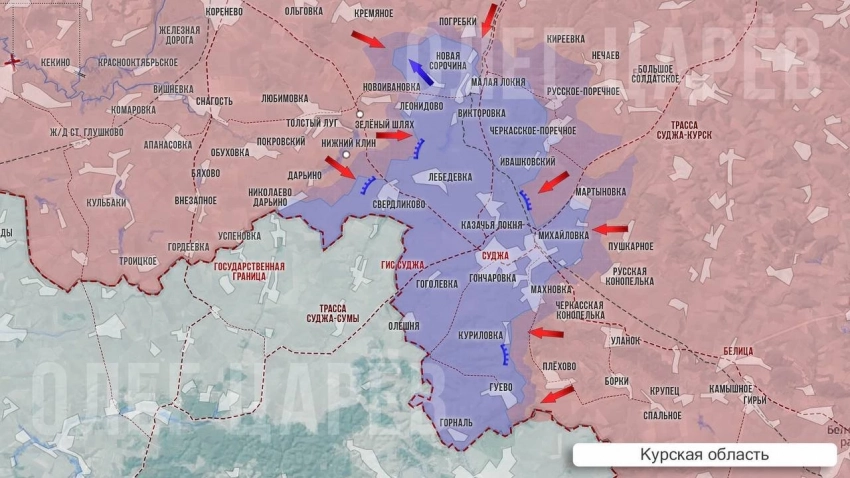 ВСУ предприняли контратаку, чтобы вернуть под свой контроль Плехово, потеряли один Bradley и отступили. Западнее Плехово наши войска ведут наступление и уже подступили к Куриловке. Передовые части ВС РФ форсировали реку Псёл к югу от Суджи и ведут наступление в районе поселков Гуево и Горналь. В Гуево наши войска пока не зашли, идет массированная артиллерийская обработка вражеских сил у села вдоль берега реки, пишет Олег Царёв в своём Telegram-канале.