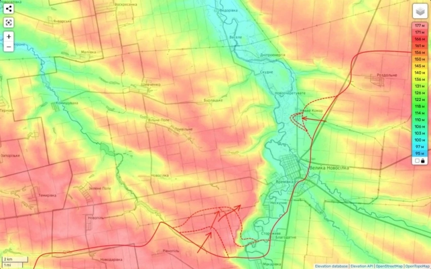 "Тем самым дорог с твердым покрытием, по которым можно снабжать гарнизон Большой Новосёлки уже нет. Все кроме одной (через Времеевку на Гуляйполе) мы контролируем физически. А последнюю при помощи огня артиллерии и дронов. Ещё есть возможность как-то проехать (тоже под огнем дронов) по проселочным дорогам на Времеевку с севера, но еще один рывок западнее реки Мокрые Ялы и эта возможность также будет практически обнулена. ", - пишет Юрий Подоляка в своём Telegram-канале.
