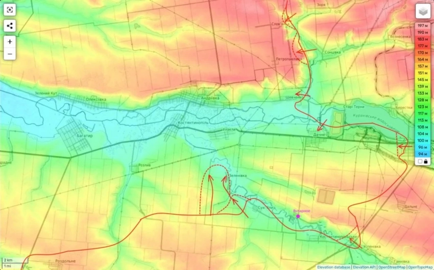 Более того, вчера мы уже имели успех чуть восточнее (взяли под контроль южную часть села Даченского и заметно потеснили противника в его северной части).