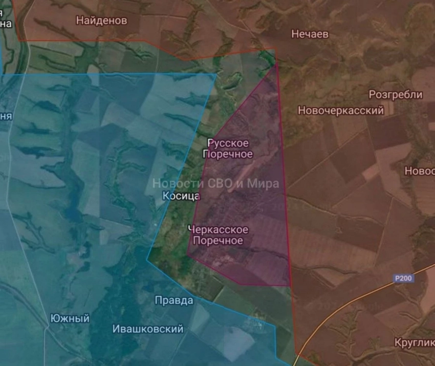 Село Черкасское Поречное практически полностью освобождено, остались южные окраины в серой зоне, также идёт зачистка. Освобождено 14.3 км².