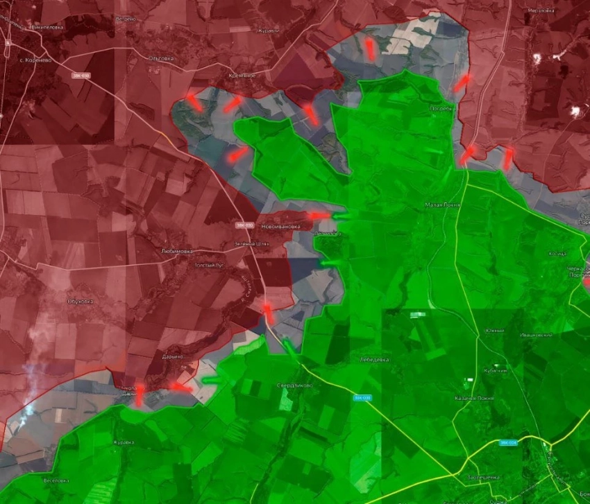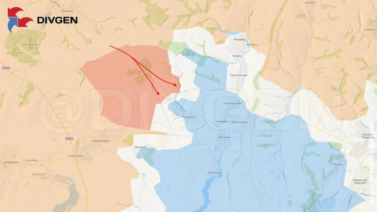 На северном участке напряжённая обстановка фиксируется восточнее населённого пункта Новоивановски и на подступах к Кругленькому. Обстановка в районе Погребков пока доподлинно неизвестна, на сей счёт поступают противоречивые сведения. Чуть восточнее подразделения ВС РФ ведут бои Русском Поречном и Черкасском Поречном. Одни источники утверждают, что населённые пункты уже освобождены от присутствия противника, другие же сообщают, что бои ещё продолжаются, пишет PulsePen.