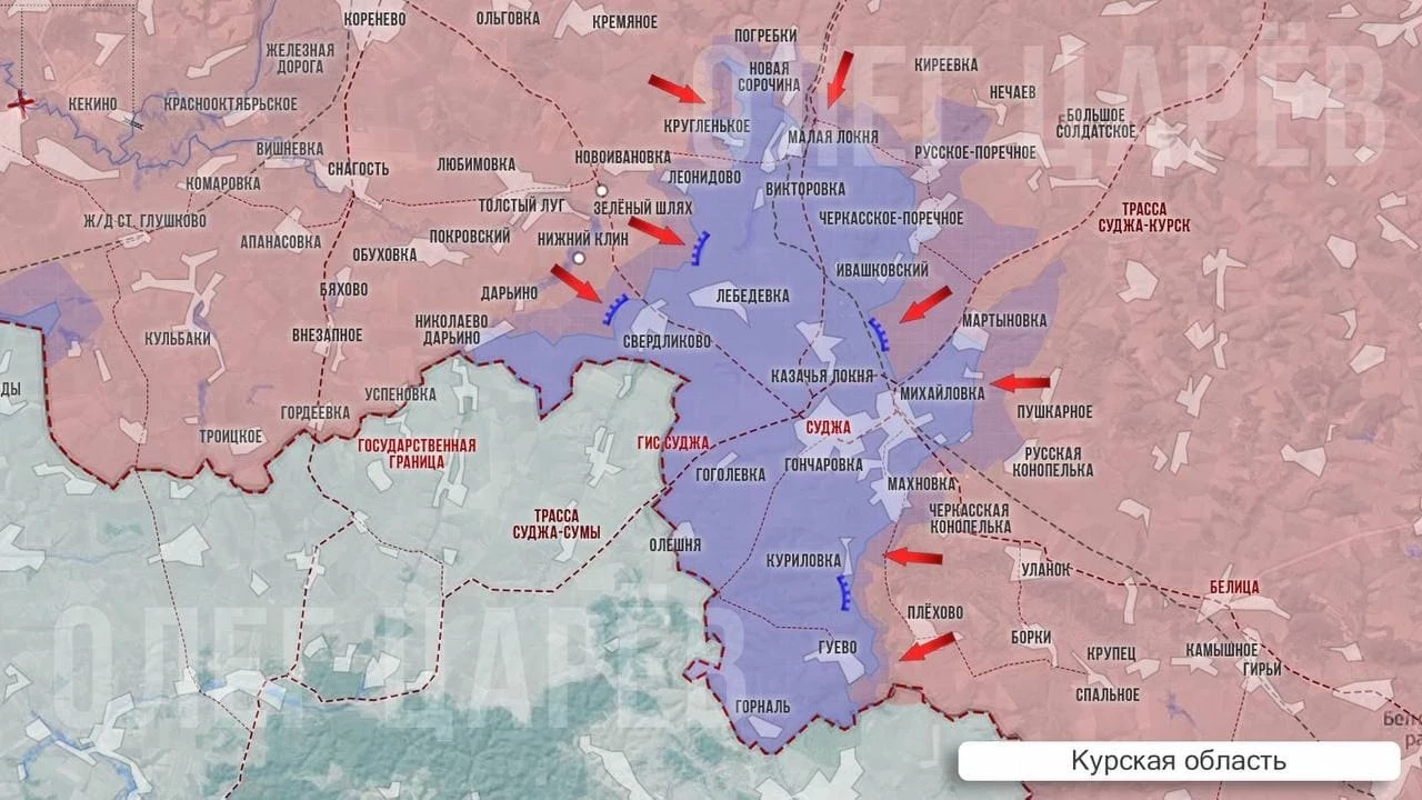 В приграничье Курской области днём и ночью ведутся ожесточённыебои, наши войска постепенно отодвигают ВСУ с северо-запада оккупированного района.