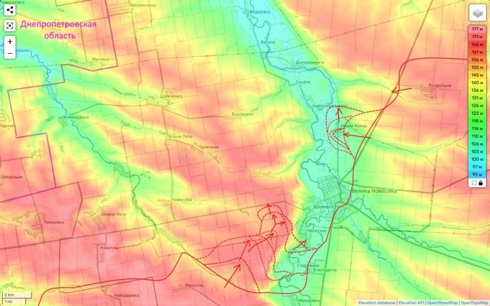 А контроль над холмами над Времеевкой даёт полный визуальный контроль над всеми даже грунтовыми дорогами идущими в Большую Новоселку. И это полностью лишит ВСУ здесь любого снабжения. Также начался штурм Нескучного.