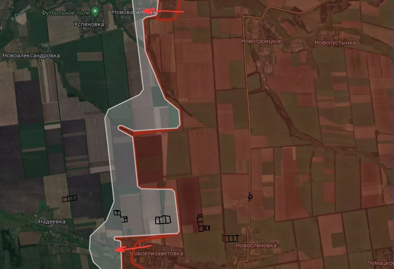Российские войска ведут штурмовые действия в западной части Нововасильевки.