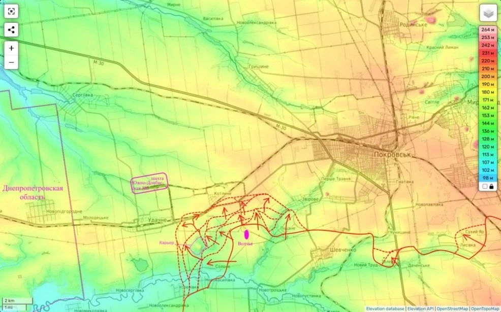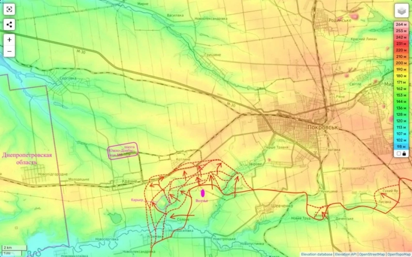 В российских силовых структурах сообщили, что подразделения ВС РФ перерезали ключевую трассу из Красноармейска (украинское название - Покровск) в Днепропетровск.