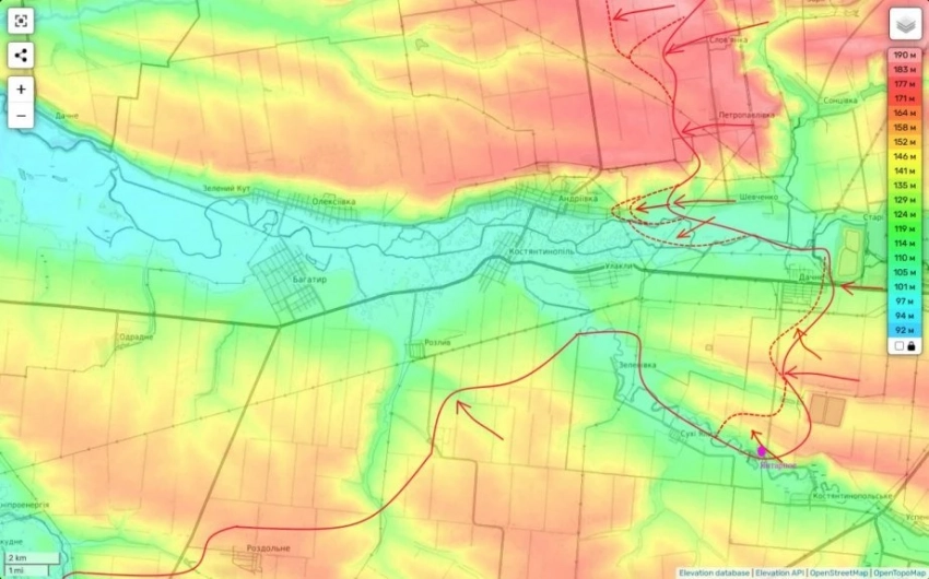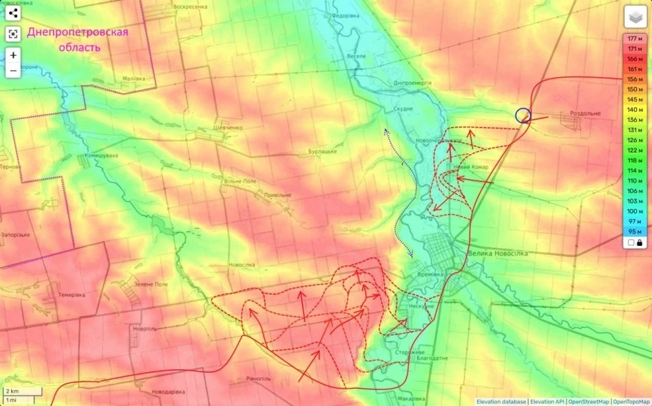 Хатылев отметил, что Днепропетровская область - это преимущественно равнинная местность с небольшими лесополосами, на которой скрыться, спрятаться и закопаться очень сложно. А вот с точки зрения продвижения - там развитые дороги, плюс мосты через Днепр.