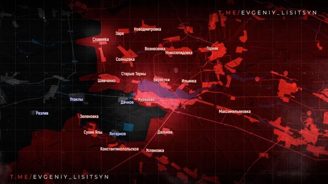 На Купянском направлении всё шире плацдарм к северу от Купянска. ВС РФ штурмуют Западное у дороги на Купянск и Голубовка на берегу Оскола в 2 км от Купянска, уточняет в своём Telegram-канале военкор Евгений Лисицын.