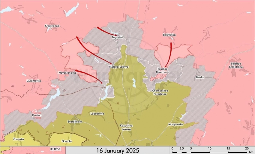 «Только в северной части бывшей зоны контроля ВСУ (Погребки / Малая Локня / Русское Поречное) российская армия начала давить с четырех сторон, активно поддавливая фланги. Украинский мини-наступ № 2, которого все ждали, пока так и не случился, поэтому российские войска, видимо, решили его не дожидаться и начали улучшать позиции сами», - отмечает канал.
