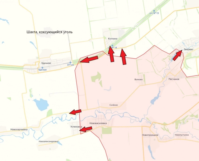 На Кураховском направлении ВС РФ закрепились на восточной окраине Дачного, а также выбили ВСУ со всего правого берега реки Сухие Ялы и продвигаются к селу Улаклы.