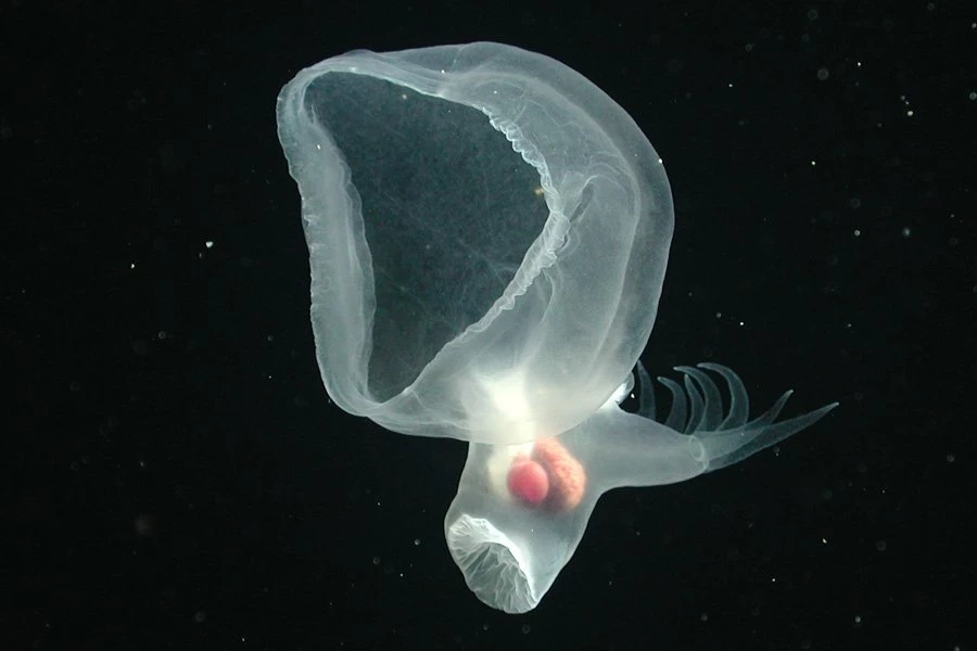 Прозрачное существо размером с бейсбольный мяч было замечено почти четверть века назад на глубине около 2,6 километра под поверхностью залива Монтерей в Калифорнии учеными, использовавшими дистанционно управляемый подводный аппарат из Научно-исследовательского института аквариума залива Монтерей. Существо плавало с помощью широкого хвоста и иногда светилось биолюминесценцией, но оно не было явно похоже ни на одного из известных обитателей этих глубин.