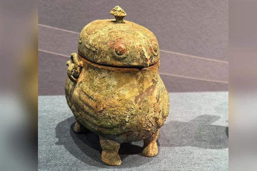 Эксперты Центра по защите, реставрации и идентификации культурных реликвий провинции Шаньдун смогли аккуратно обработать коррозию в точке контакта и открыть крышку. На внутренней стенке сосуда было только небольшое количество красной ржавчины, оксида меди, что доказывало, что контейнер был плотно запечатан во время погребальных ритуалов, и содержимое не было полностью окислено. Плотная первоначальная герметизация, еще больше затянутая коррозией, также предотвратила испарение жидкого содержимого. Было обнаружено, что в сосуде находилась прозрачная жидкость, предположительно вино, которое было захоронено вместе с покойным в качестве погребального приношения.