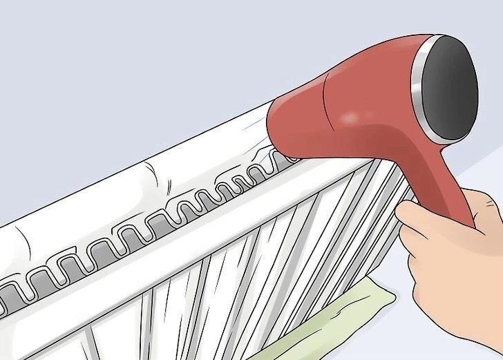 Возьмите фен и направьте поток горячего воздуха на заднюю часть батареи.