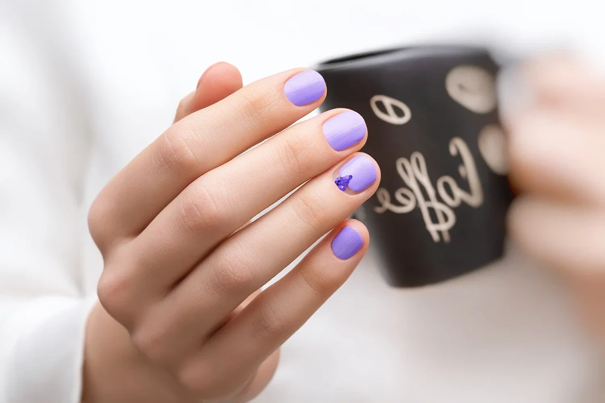 Лавандовый маникюр — ещё один прекрасный выбор для встречи Нового года. Этот мягкий фиолетовый оттенок олицетворяет гармонию и спокойствие. Лаванда способствует эмоциональной стабильности и внутреннему миру, что может привлечь людей, ищущих глубокие и искренние связи. Лавандовые ногти добавят изысканности вашему образу и напомнят о романтических вечерах, проведённых в компании любимого человека.