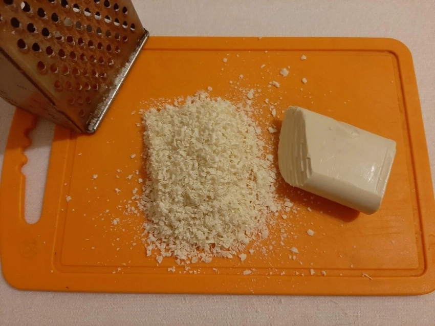 Натрите хозяйственное мыло на терке.