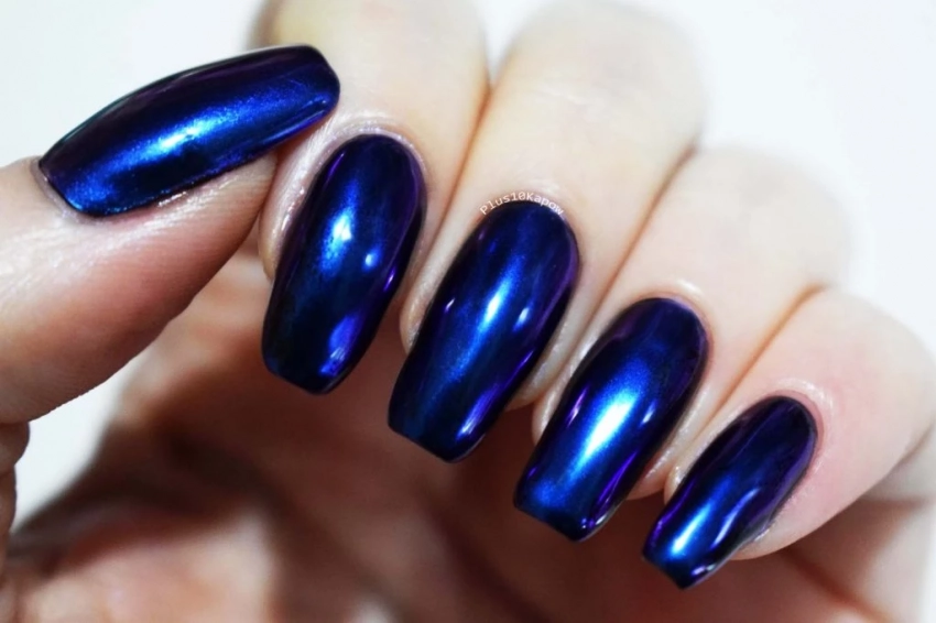 Хромированный эффект — это то, что придает маникюру особое сияние, как у драгоценного камня. В этом сезоне особенно популярны ногти с хромированным сапфировым оттенком. Они выглядят роскошно и элегантно, создавая эффект драгоценного сияния. Такой маникюр будет идеален как для вечерних выходов, так и для повседневной носки, привлекая восхищенные взгляды.