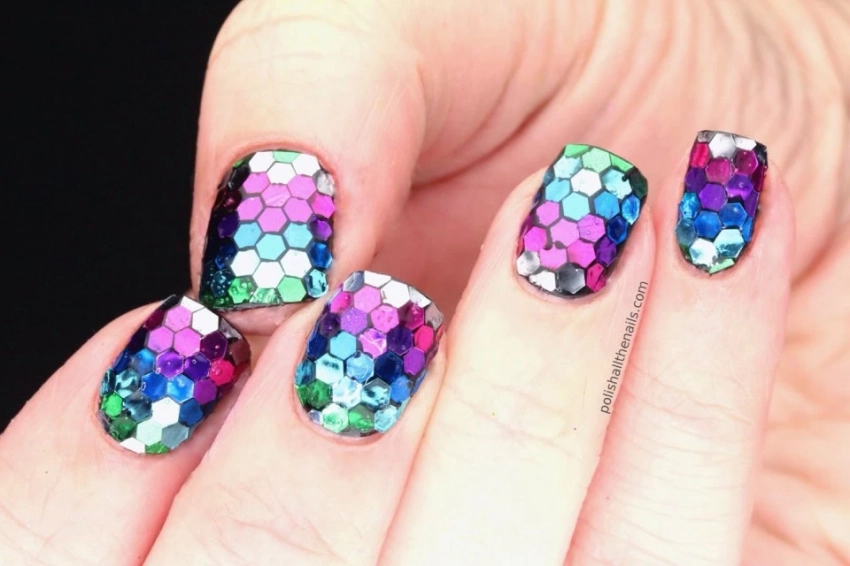 Если вы планируете наряд в стиле диско или платье с пайетками, маникюр может стать ярким продолжением образа. Покройте ногти золотыми, серебряными или цветными пайетками, чтобы дополнить праздничный образ.