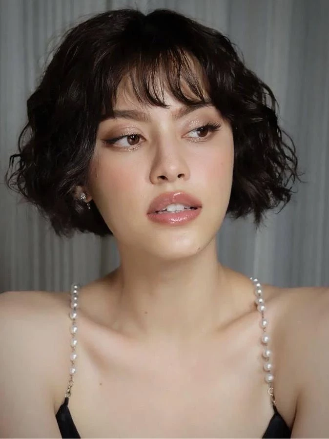 Френч-боб с легкими волнами и небрежным укладом вдохновлен парижским шиком. Отлично смотрится с короткой прямой челкой, создавая расслабленный и стильный образ.